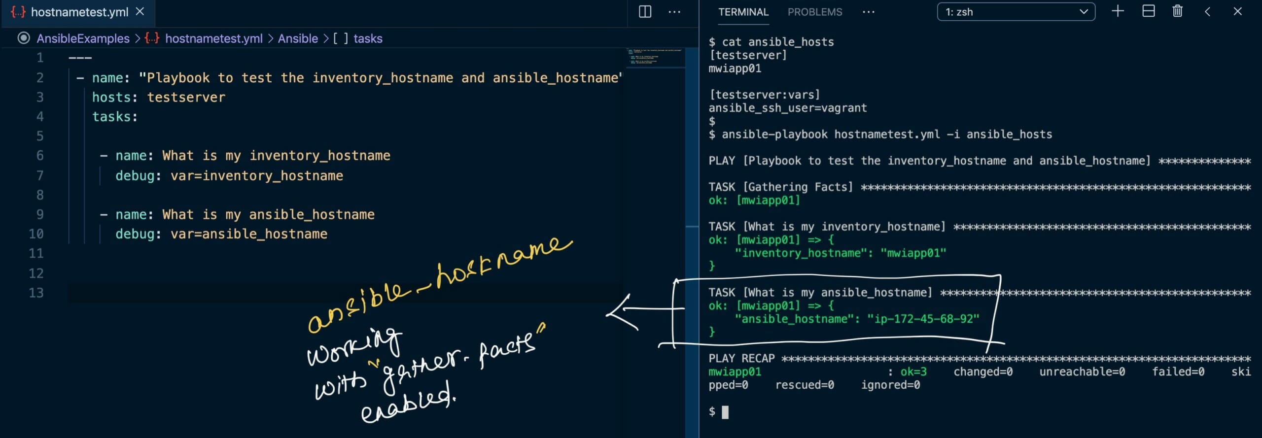 Ansible Playbook example with ansible_hostname and inventory_hostname